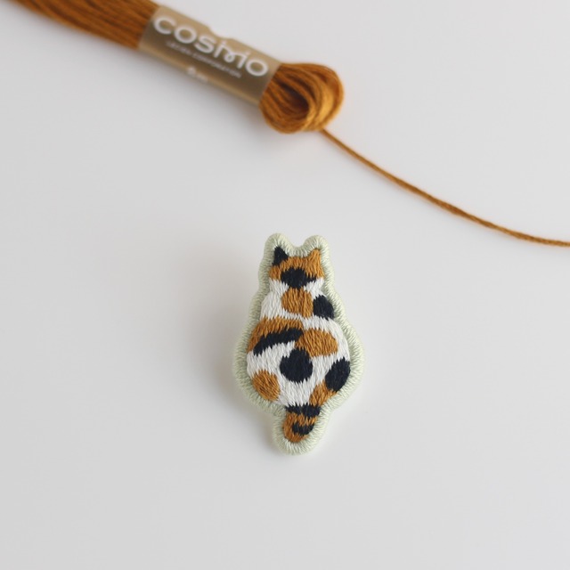 猫の後ろ姿 刺繍ブローチ (三毛3) <受注制作>