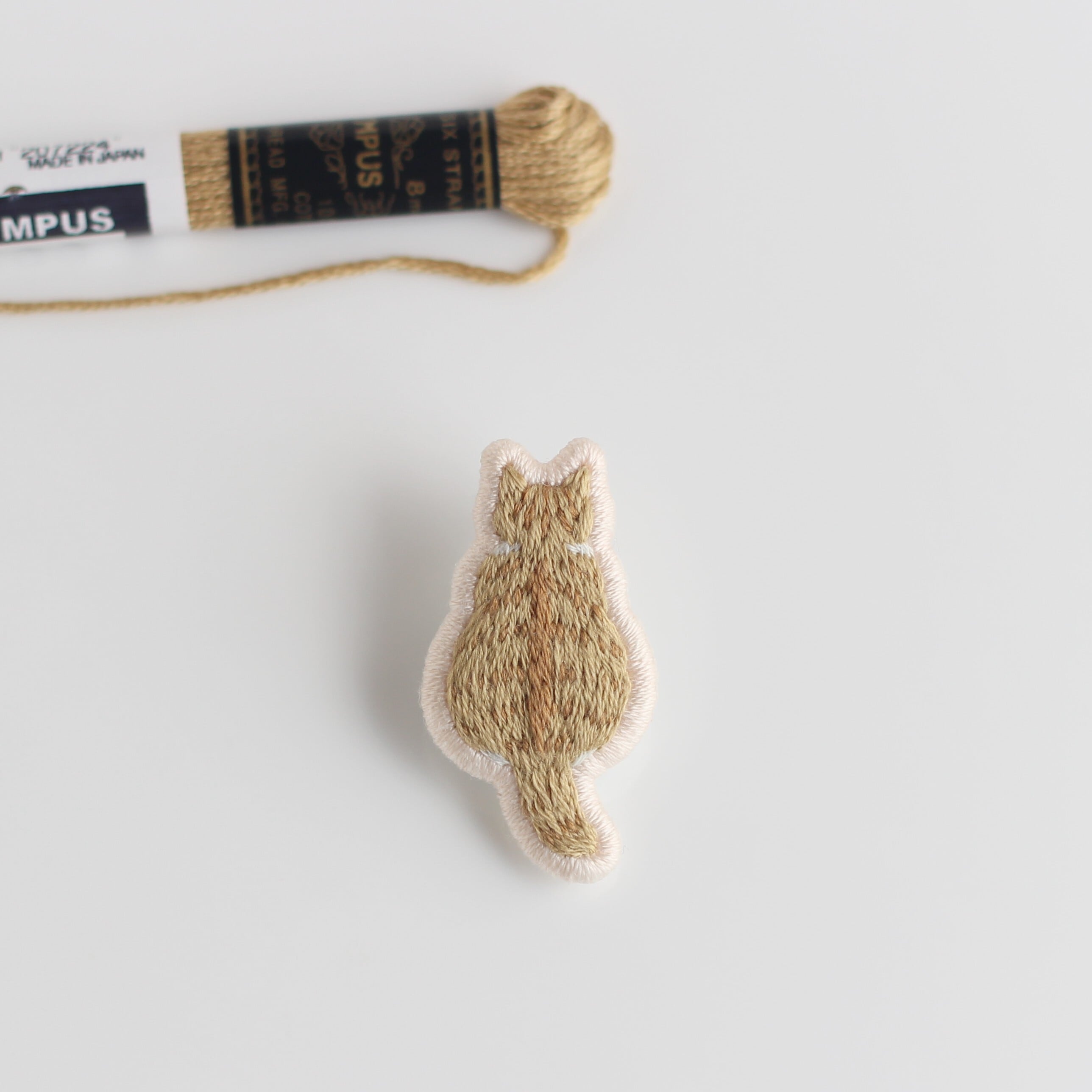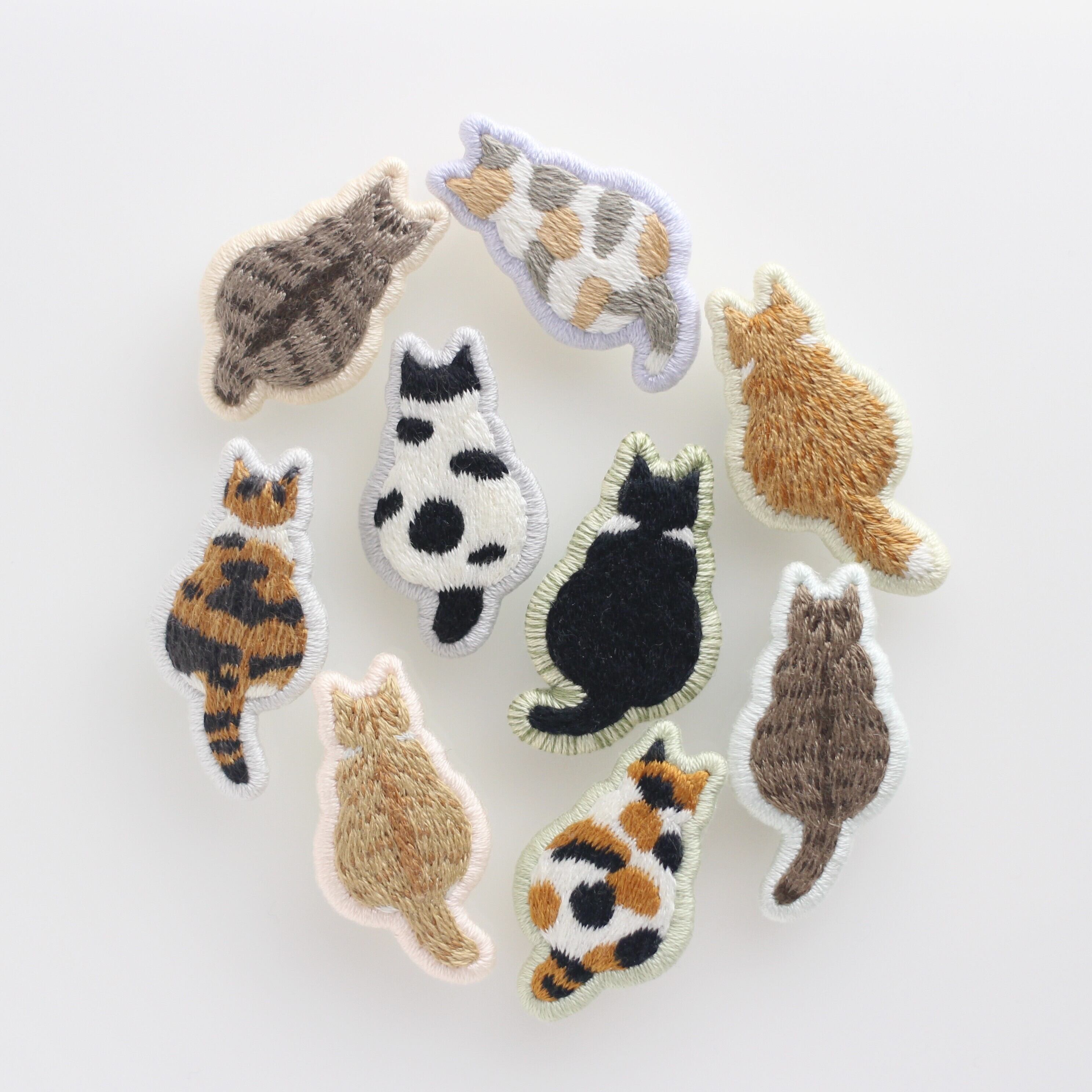 猫の後ろ姿を刺繍したブローチです。