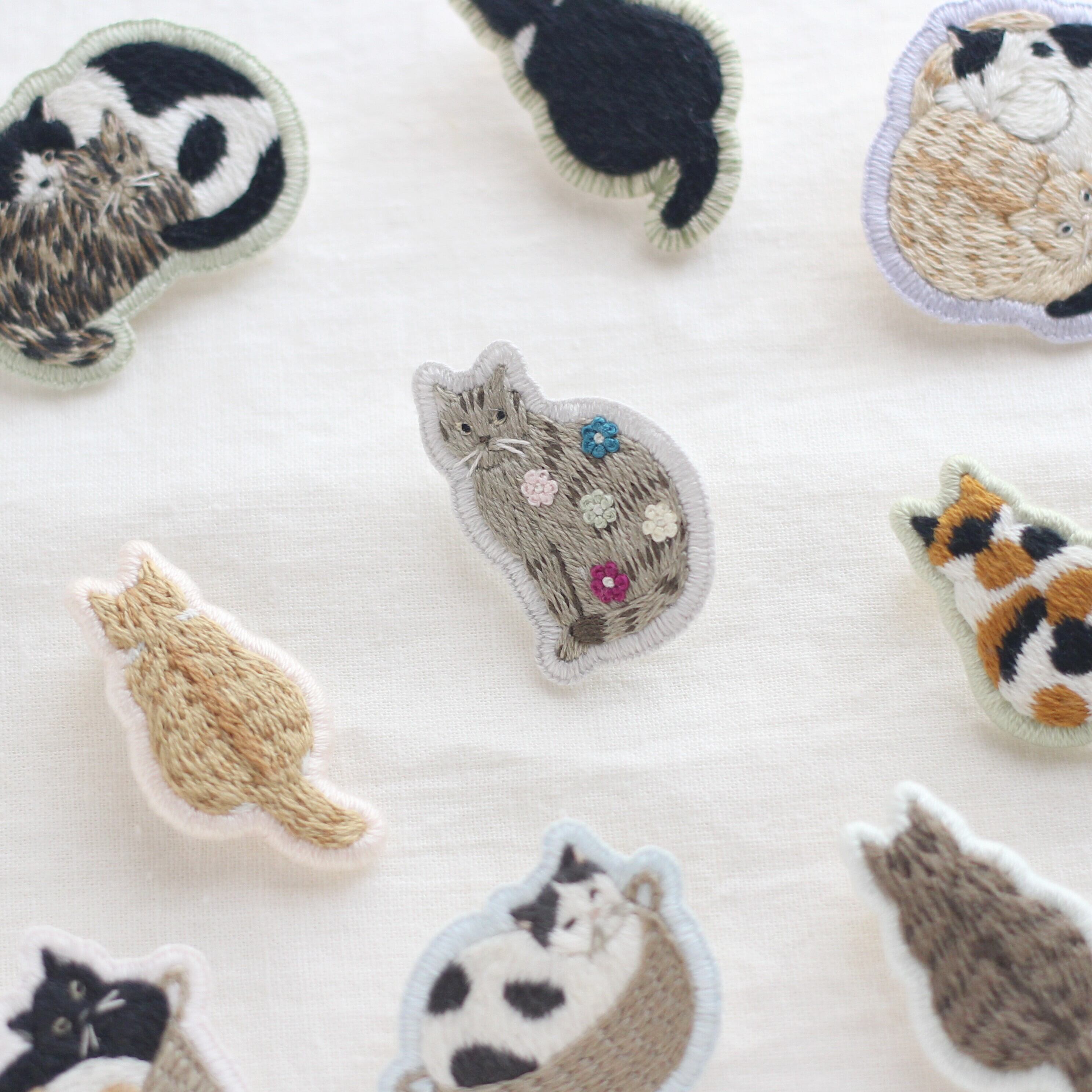 寄り添う2匹の猫を刺繍したブローチです。